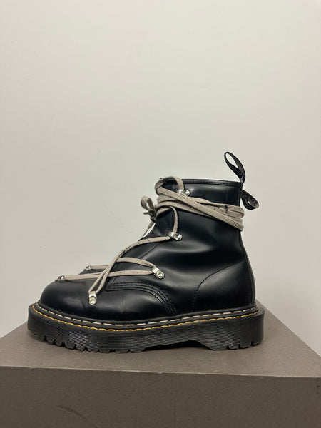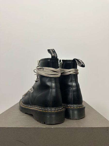 Tagged size 43 and fit a 43-43.5 comfortably. In good but lightly worn conditions with some minor creasing and heel drag. Constructed from a glossy calfskin and features the iconic pentagram lacing system. From the first Dr. Martens collab, these are quite rare.