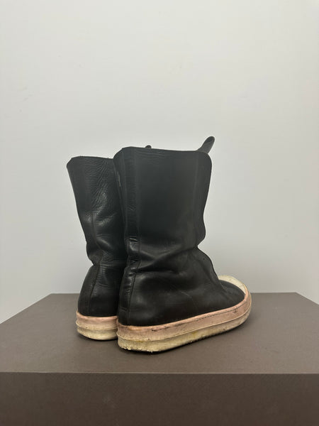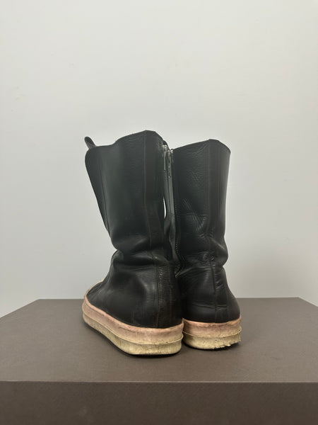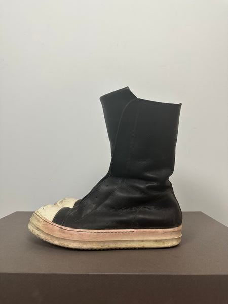 Tagged size 43, fits a 43.5-44 comfortably. In good but worn condition, with notable heel drag and scuffing to the toe box. Exceedingly rare boots, one of the few older collection footwear items to not see a reissue in the last few years. The red bleed on the midsole is caused by the dye used on the upper during this season. Midsoles and toeboxes can be easily cleaned up if desired, but many people prefer them in their current state.