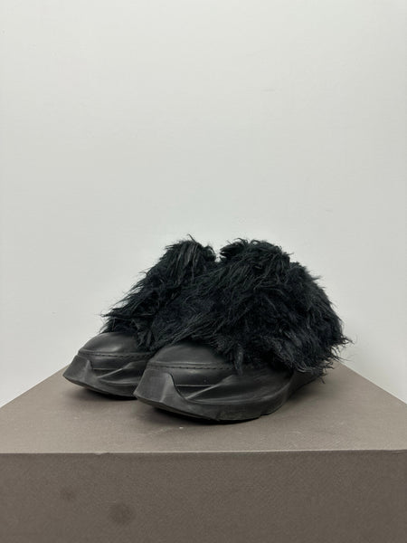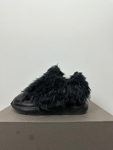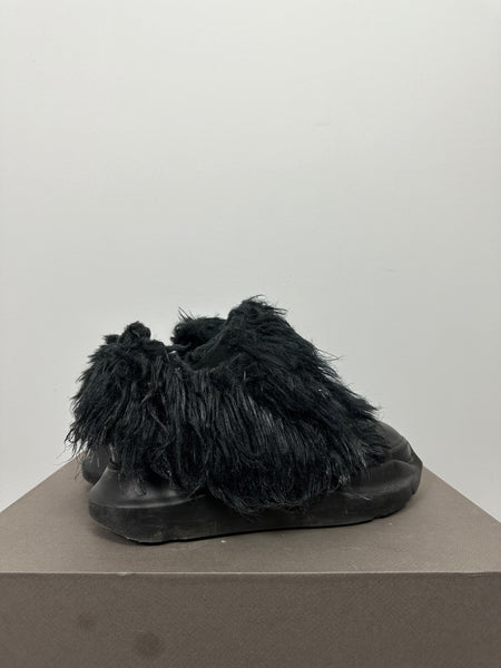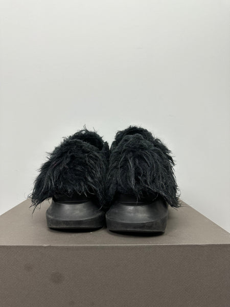 Tagged size 44 and fit a 44-45 in my opinion. As they are unlaced they fit a bit bigger than they are tagged. Feature a matted synthetic yeti-style fur that gives them a ton of volume. In good condition with no damage to the fur and slight heel drag.