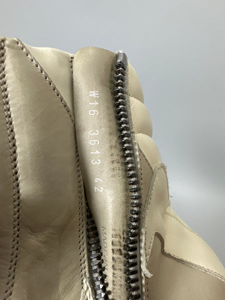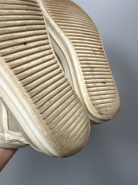 Tagged size 42, fits 42.5-43 comfortably.In good shape, worn a handful of times with minor signs of wear to the upper and minimal heel drag.Ships with laces.